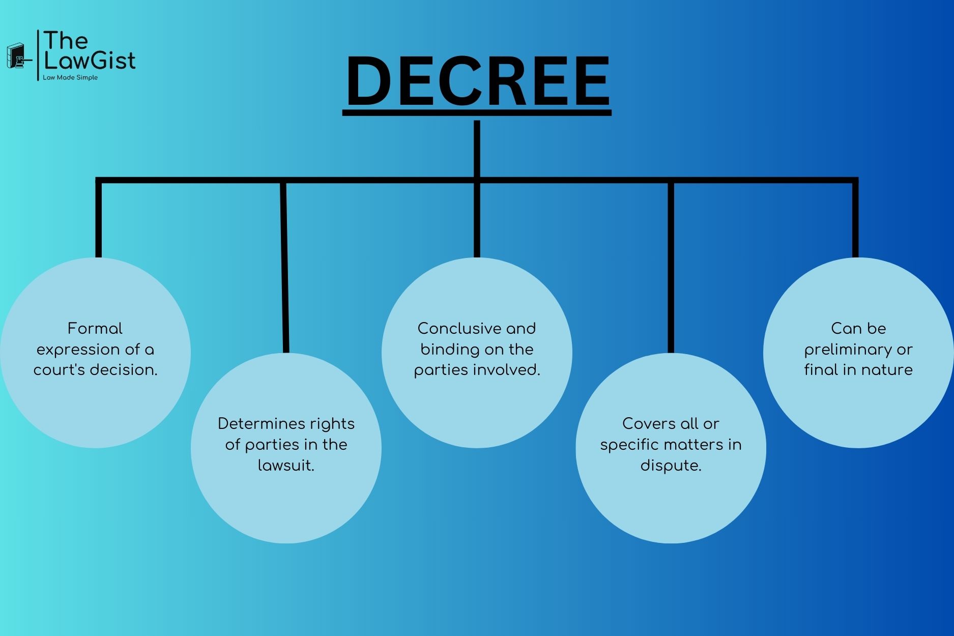 - Finality: A decree is a conclusive determination of the case, putting an end to the litigation between the parties involved. It settles the rights and obligations of the parties, leaving no further dispute on the matters covered in the decree.