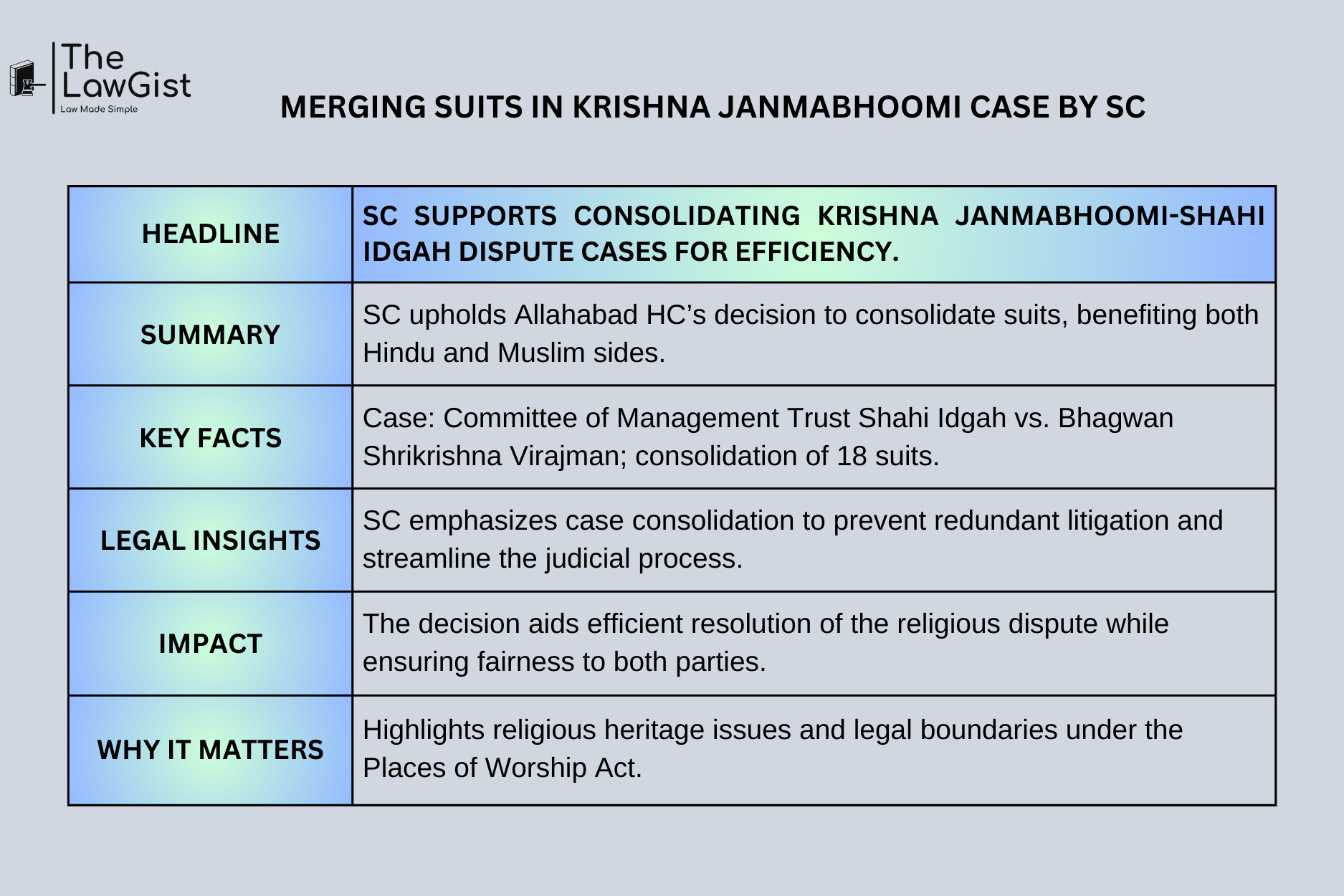 The case showcases the serious issues of religious heritage, legal boundaries under the Places of Worship Act, and judicial efficiency in managing delicate and sensitive issues.